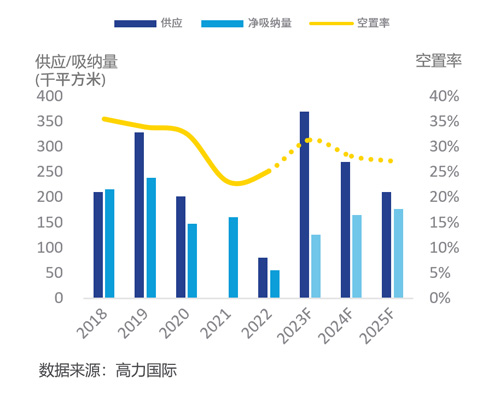 供應(yīng)、凈吸納量及空置率,2018-2025F