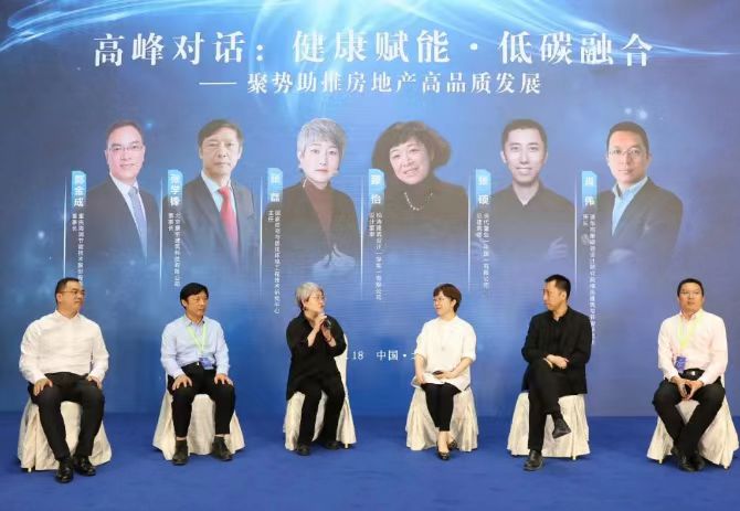 隨后,大會高峰對話環(huán)節(jié),國家住宅與居住環(huán)境工程中心張磊、重慶海潤節(jié)能技術(shù)股份有限公司董事長郭金成、柏濤建筑設(shè)計( 深圳)有限公司設(shè)計董事滕怡、北京康宅建筑科技有限公司董事長張學鋒、當代置業(yè)(中國)有限公司總建筑師張碩、清華同衡規(guī)劃設(shè)計研究院綠色建筑與節(jié)能研究所所長肖偉六位專家就“健康賦能、低碳融合--聚勢助推房地產(chǎn)高品質(zhì)發(fā)展”主題進行熱烈探討。希望建筑業(yè)打造好的產(chǎn)品、好的設(shè)計、好的施工建設(shè),最后打造好的服務(wù),大家在全鏈條上一起協(xié)同創(chuàng)新,共同打造我國綠色健康的好房子!