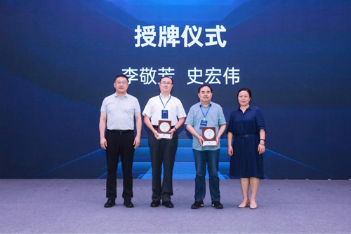 全聯(lián)房地產(chǎn)商會秦晶副秘書長和邊東昱副秘書長為全聯(lián)房地產(chǎn)商會節(jié)能門窗分會會監(jiān)事長、亞薩合萊國強(山東)五金科技有限公司總經(jīng)理李敬芳和為全聯(lián)房地產(chǎn)商會節(jié)能門窗分會執(zhí)行監(jiān)事長、天津新艾隆科技有限公司董事長史宏偉授牌。
