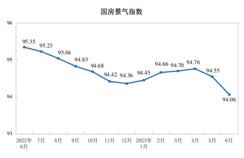 6月份,房地產(chǎn)開發(fā)景氣指數(shù)(簡稱“國房景氣指數(shù)”)為94.06。