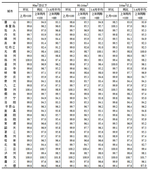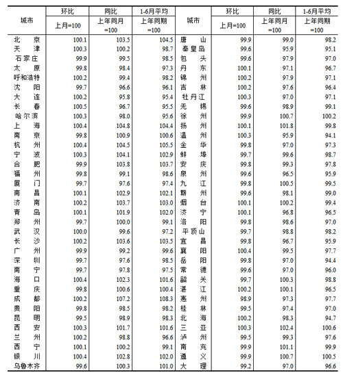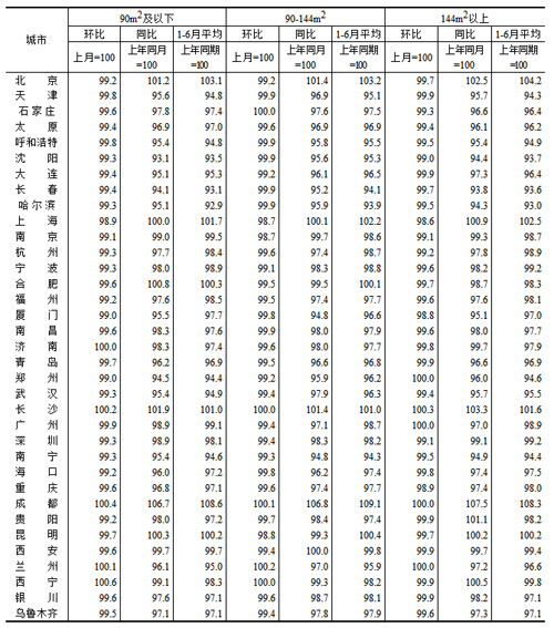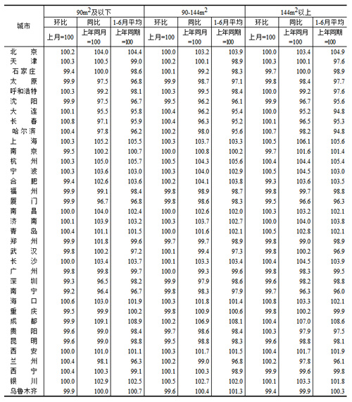 表1:2023年6月70個大中城市新建商品住宅銷售價格指數(shù)