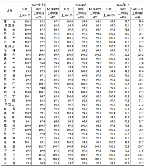 表3:2023年6月70個大中城市新建商品住宅銷售價格分類指數(shù)(二)