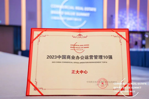 圖注:正大中心榮獲“2023中國商業(yè)辦公運營管理10強”證書