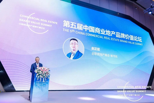 圖注:全聯(lián)房地產(chǎn)商會秘書長趙正挺在第五屆中國商業(yè)地產(chǎn)品牌價值論壇發(fā)表致辭