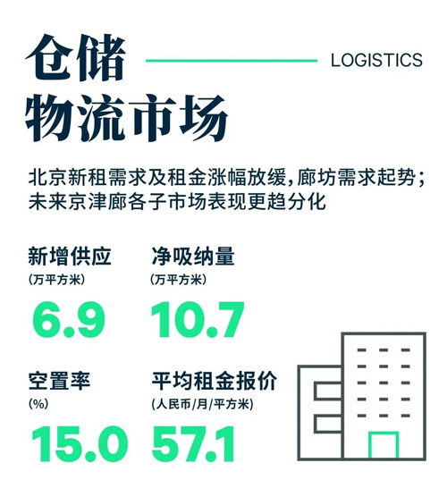 廊坊臨空經(jīng)濟區(qū)入市10.2萬平方米的高標倉儲項目。受益于北京需求外溢,恰逢各大頭部電商企業(yè)及第三方物流備戰(zhàn)年中大促,季內(nèi)全市凈吸納爆發(fā)式增長至34.6萬平方米。第三方物流占據(jù)總新租交易面積的54%,電商類占38%居次,外加小部分汽配及家居制造業(yè)需求。季末全市空置率環(huán)比大幅回落9.5個百分點至50.2%,以北三縣、安次及新興子市場臨空經(jīng)濟區(qū)表現(xiàn)最為活躍。