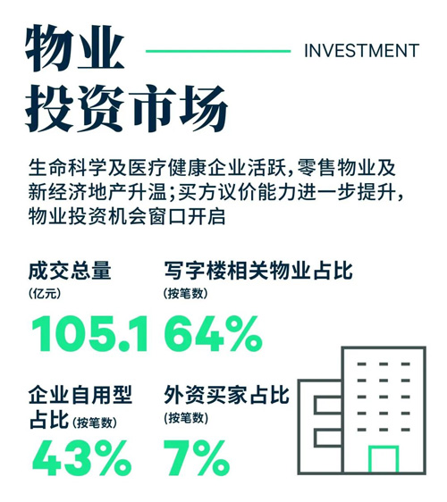 上半年近一半的交易筆數(shù)來自企業(yè)購置樓宇自用的需求,本季度生命科學及醫(yī)療健康類企業(yè)表現(xiàn)尤其活躍,分別完成位于經(jīng)開區(qū)和東升的研發(fā)辦公,以及位于望京區(qū)域的購物中心共三宗交易。中資地產(chǎn)基金亦有表現(xiàn),購入CBD區(qū)域一座成熟且收益穩(wěn)定的長租公寓。從投資物業(yè)類型來看,近期公募REIT擴容并將“消費基礎設施”納入底層資產(chǎn)范圍,在此背景下,本季度零售物業(yè)交易占比高達65%,其中包括季內(nèi)最大成交,即居然之家以19.63億元的對價完成對亞奧商圈的朝陽遠洋未來廣場的收購,使得零售物業(yè)成為除辦公外上半年最受歡迎的板塊。此外,以產(chǎn)業(yè)園區(qū)、工業(yè)物流、長租公寓、生命科學地產(chǎn)為代表的新經(jīng)濟板塊均有貢獻成交。隨著 “新經(jīng)濟地產(chǎn)”運營管理模式、通過REIT募資和退出模式逐步成熟,投資者對未來成本、收益及價值評估方式逐漸清晰并形成共識,有助推動投資交易落地。