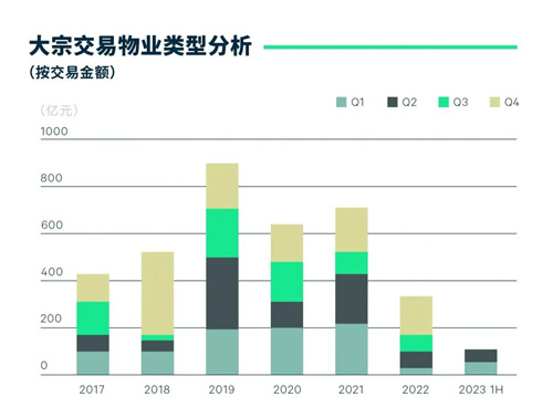 2023年上半年,在整體宏觀經(jīng)濟溫和復蘇的大環(huán)境下,北京物業(yè)投資市場共錄得十四筆大宗交易,交易總額同比上升20%達105.1億元,其中二季度完成七筆交易共53.2億元,環(huán)比上漲2.5%。活躍度緩慢回升,但和近年平均水平仍有較大差距。