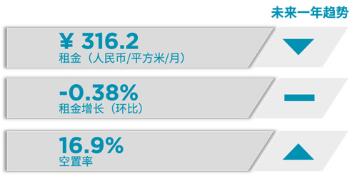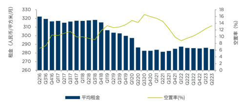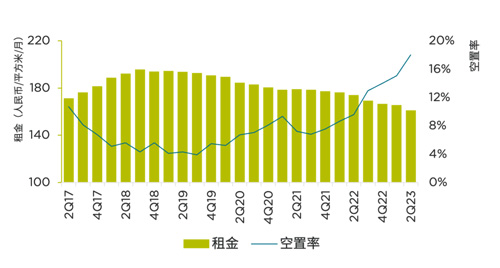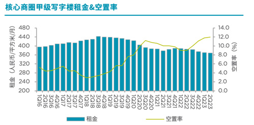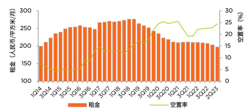 季度甲級(jí)寫(xiě)字樓租金和空置率走勢(shì)