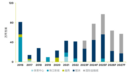 廣州甲級(jí)寫(xiě)字樓歷年新增供應(yīng)及未來(lái)供應(yīng)
