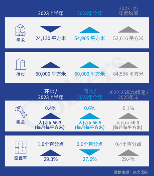 短期內(nèi)市場供應(yīng)壓力得到緩解,隨著需求恢復(fù),預(yù)計年末空置率將小幅回落,租金將維持底部震蕩趨勢。