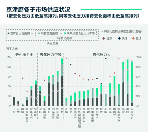 其他子市場短期內(nèi)去化壓力突出。其中,大興空港、廊坊臨空經(jīng)濟區(qū)、天津空港因機場效應(yīng)帶動,去化壓力相對較小。