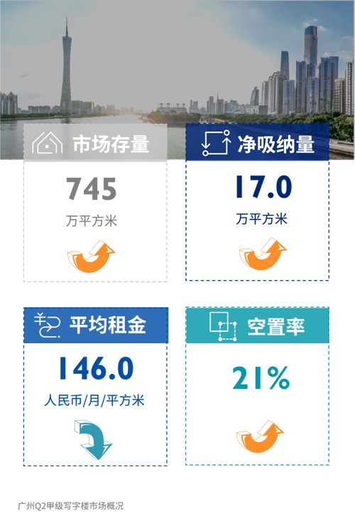 第二季度,全市共五個(gè)新項(xiàng)目入市,單季供應(yīng)面積錄得44.3萬平方米,創(chuàng)歷史新高。新增需求銳減,租賃市場表現(xiàn)平淡,盡管新項(xiàng)目去化使季度凈吸納量回升至17萬平方米,空置率仍顯著上升。