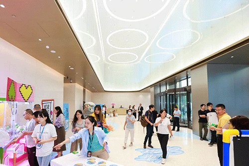 北京凱德·星貿(mào)希望在辦公之外,為租戶提供更為卓越的體驗(yàn)、選擇和服務(wù),通過(guò)開(kāi)展豐富多元的活動(dòng),為高端商務(wù)辦公空間注入有溫度、有互動(dòng)感的入駐體驗(yàn),從純粹的場(chǎng)地出租方升級(jí)為有價(jià)值的體驗(yàn)供給方,滿足不同行業(yè)、不同年齡層B端客群的商務(wù)、社交、放松需求,樹(shù)立“凱德式辦公”新風(fēng)尚。因此,北京凱德·星貿(mào)借助煥新啟幕的契機(jī),打造“Sparkle Day”星貿(mào)開(kāi)放日,并將這一星貿(mào)標(biāo)志性的活動(dòng)延續(xù)至未來(lái)的每一年里,鏈接已入駐的租戶社群,同時(shí)面向市場(chǎng)客戶和代理機(jī)構(gòu),與大家分享星貿(mào)的每一步成長(zhǎng)。今年的“Sparkle Day”,星貿(mào)以“Let’s Sparkle,Together一起Fun”為主題,邀請(qǐng)樓內(nèi)租戶一起欣賞西洋樂(lè)四重奏,參與多巴胺游樂(lè)場(chǎng)的飛盤、套圈、娃娃機(jī)、沙狐球等集章打卡互動(dòng),贏取驚喜好禮,體驗(yàn)北京凱德·星貿(mào)輕松愉悅、充滿活力的啟幕氛圍。