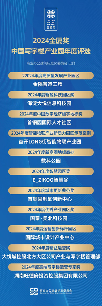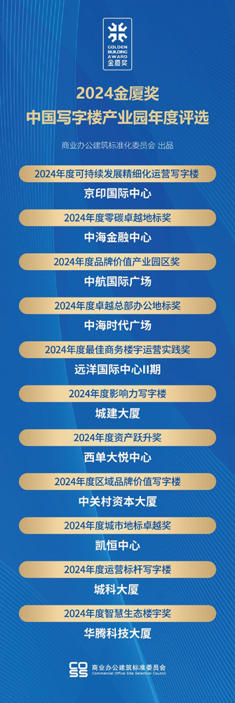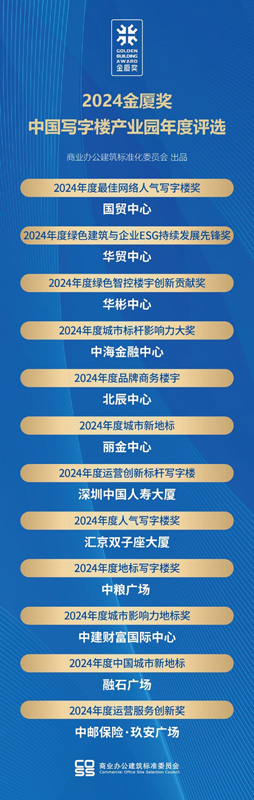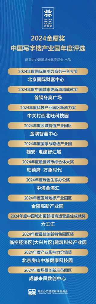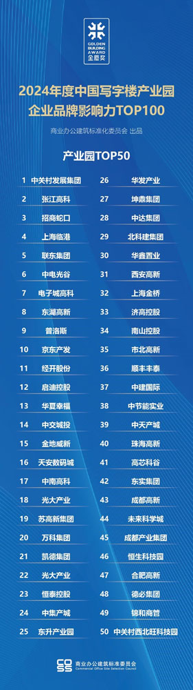 2024年度寫字樓產(chǎn)業(yè)園品牌影響力100強(qiáng)"由品牌影響力系列(TOP100榜單)和品牌表現(xiàn)力系列(2024金廈獎(jiǎng))兩部分組成。