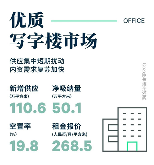 2023年上海寫字樓市場(chǎng)共錄得18個(gè)新增供應(yīng),共計(jì)110.6萬(wàn)平方米,同比上升31.1%。從供應(yīng)區(qū)域來(lái)看,主要布局在北外灘、前灘、真如和花木子市場(chǎng)。新增供應(yīng)集中入市,推動(dòng)全市空置率攀升至19.8%,同比上升2.4個(gè)百分點(diǎn)。