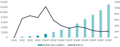 全球生成式AI收入及預(yù)測(cè)