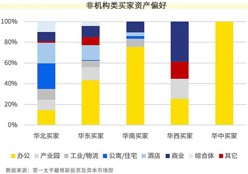 縱觀全年,非機(jī)構(gòu)類買家來(lái)源仍以華東、華北及華南為主,華北買家資產(chǎn)偏好更為多元,來(lái)自華東及華南的買家則更為偏好購(gòu)入辦公類資產(chǎn)用于自用或投資。