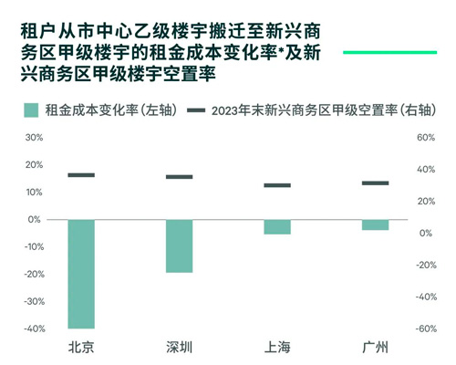 注釋*:租金成本變化率=2021至2023年市中心乙級(jí)租金變化率+2023年新興商務(wù)區(qū)甲級(jí)和市中心乙級(jí)樓宇租金差,租金為有效租金。