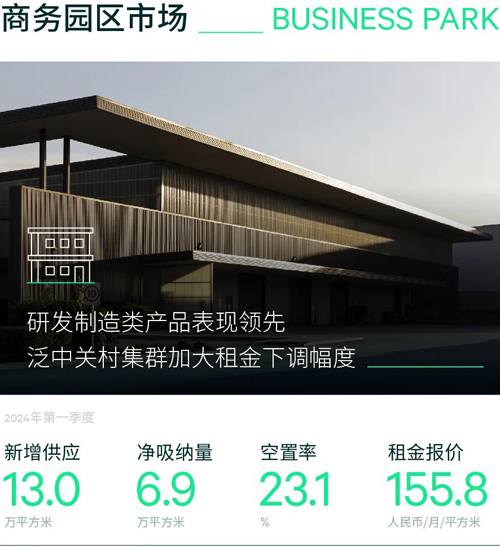 2024年第一季度,北京商務園區(qū)市場錄得一個新項目約13萬平方米交付,項目為順義子市場核心區(qū)位的小獨棟辦公。