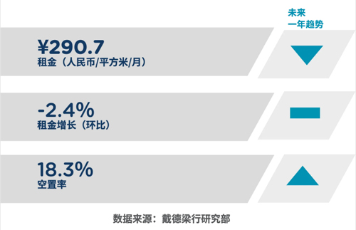 一季度,受新興商圈大面積成交租賃的影響,北京整體市場季度凈吸納量已接近2023年全年水平,為14.4萬平方米。寫字樓市場成交的小幅回升令全市空置率自2022年二季度以來首次下調(diào),環(huán)比下降0.4個百分點至18.3%。雖然一季度市場活躍度較2023年有所提升,但現(xiàn)有的高空置率持續(xù)給業(yè)主施壓,至此,北京全市租金繼續(xù)下探至每月每平方米人民幣290.7元。