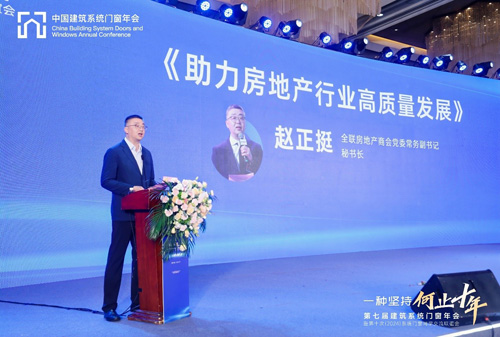 接著,全聯(lián)房地產(chǎn)商會(huì)黨委常務(wù)副書記、秘書長(zhǎng)趙正挺上臺(tái)致辭,做了《穿越周期;洞見未來-助力房地產(chǎn)行業(yè)高質(zhì)量發(fā)展》精彩演講,趙秘書長(zhǎng)在演講中指出:我國(guó)城鎮(zhèn)化和基礎(chǔ)設(shè)施建設(shè)已初步完成,未來新建建筑的增長(zhǎng)空間十分有限,房屋開發(fā)建設(shè)將以老舊建筑拆除重建為主,以供給結(jié)構(gòu)優(yōu)化的增量開發(fā)為輔,高質(zhì)量發(fā)展將成為房地產(chǎn)行業(yè)的主旋律。高質(zhì)量發(fā)展的內(nèi)在要求不僅是產(chǎn)品質(zhì)量和服務(wù)質(zhì)量的提高,還包括市場(chǎng)環(huán)境、機(jī)制等方面的優(yōu)化。對(duì)于我們系統(tǒng)門窗行業(yè)而言,需要站在房地產(chǎn)發(fā)展新的歷史起點(diǎn)上,面對(duì)挑戰(zhàn),抓好機(jī)遇,在原有2B市場(chǎng)的基礎(chǔ)上,面向城市更新大力拓展2C市場(chǎng),以綠色發(fā)展引領(lǐng)和優(yōu)化市場(chǎng)環(huán)境。