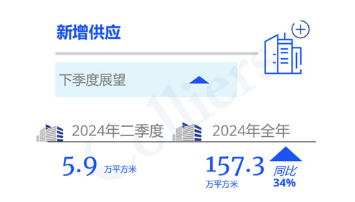 2024年二季度僅有一處新項目入市,上半年新增供應(yīng)回落。但預(yù)計2024全年新增供應(yīng)量高達(dá)到157萬平方米,為近五年內(nèi)最高供應(yīng)。