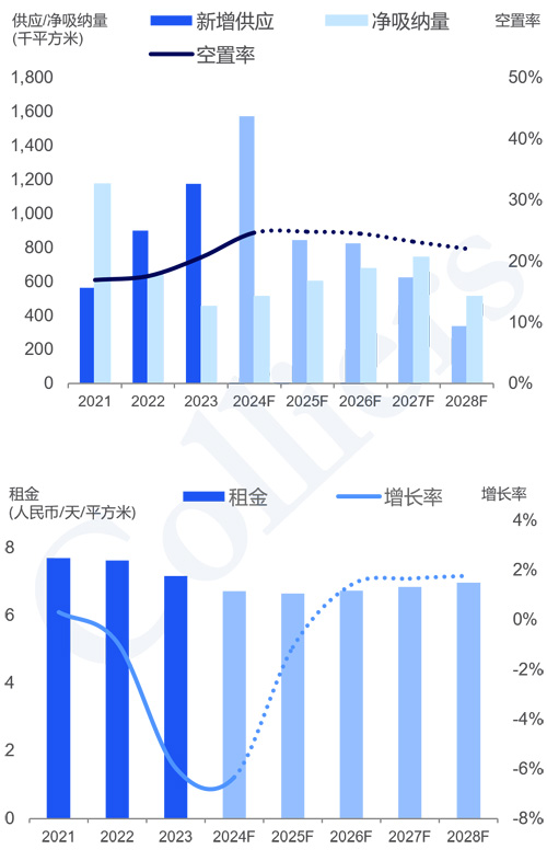 2024年預(yù)計繼續(xù)迎來大量新增入市,在此期間,市場供大于求的情況始終存在,租賃市場競爭加劇。成本節(jié)約型搬遷及續(xù)租占據(jù)市場主導(dǎo),以價換量仍為市場主流趨勢。
