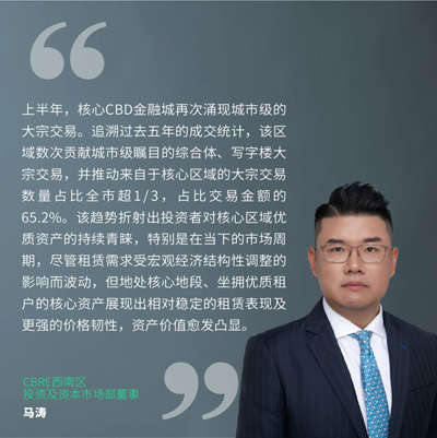 值得關注的是,上半年核心CBD金融城錄得矚目的城市級綜合體大宗交易,同時最大筆金融機構的關聯(lián)交易也落地于此。上述兩筆交易的買方均為國企,展現(xiàn)出該類買家對核心資產(chǎn)的價值持有較強信心。