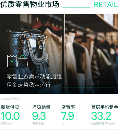 截至季末,全市空置率環(huán)比持平,較去年年末下行0.2個百分點(diǎn)至7.9%,上半年凈吸納量受新項目開業(yè)拉動,錄得9.3萬平方米。租金方面,核心與次級商圈保持穩(wěn)健,但部分新興商圈項目業(yè)態(tài)調(diào)整仍面臨調(diào)整壓力,租金水平尚未完全恢復(fù)?傮w來看,全市購物中心首層租金上半年保持平穩(wěn),維持在每天每平方米33.2元。