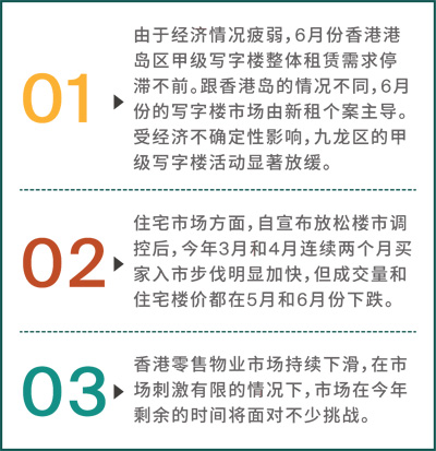 由于經(jīng)濟(jì)情況疲弱,6月份港島區(qū)甲級寫字樓整體租賃需求停滯不前,寫字樓租金則持續(xù)下跌。港島區(qū)的整體寫字樓空置率仍然高企,對業(yè)主帶來相當(dāng)大的壓力,要通過減租來吸引租戶。
