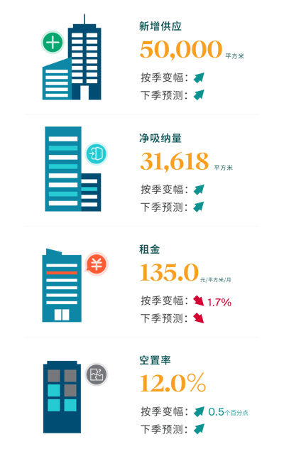 “展望2024年第三季度,考慮到寫字樓市場租賃需求的增長動(dòng)力尚處于調(diào)整蓄力階段,且金融城區(qū)域預(yù)計(jì)將有約10萬平方米的新增供應(yīng)入市,其或?qū)⑼ㄟ^其更具競爭力的租金策略刺激全市凈吸納量小幅增長。然而,鑒于整體需求恢復(fù)尚顯疲弱,預(yù)計(jì)空置率仍將面臨上行壓力,整體市場仍將靜待需求的進(jìn)一步釋放!