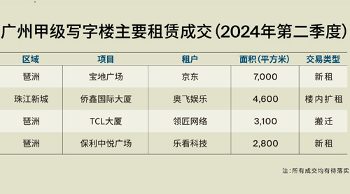 2024年第二季度,廣州寫字樓大宗交易市場略有升溫,錄得一宗成交,成交金額為人民幣2.16億元,標(biāo)的為廣州海灝國際大廈的寫字樓單元。