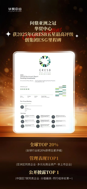 GRESB首席執(zhí)行官塞巴斯蒂安·魯索特(Sebastien Roussotte)表示:"GRESB的參評者證明,負責任的投資不僅是一種承諾,更是一條能夠被量化、能創(chuàng)造長期價值與信任的路徑。"北京華貿(mào)中心的參與和卓越表現(xiàn),正是對這一理念的生動詮釋。