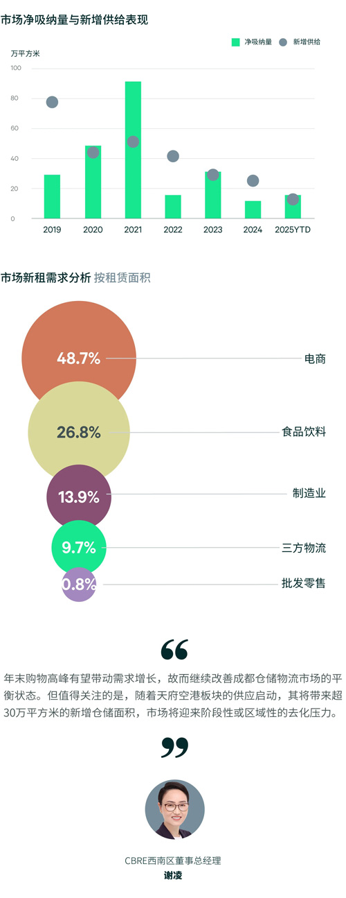 展望2025年第四季度,成都倉儲物流市場供應暫緩。