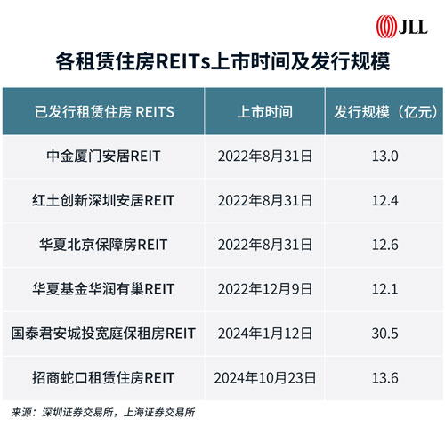 2024年,我國租賃住房公募REITs申報發(fā)行節(jié)奏持續(xù)加快。10月末,招商蛇口租賃住房REIT在深圳證券交易所正式掛牌上市,產(chǎn)品發(fā)行總規(guī)模達(dá)13.635億元。至此,我國已錄得6支保障性租賃住房公募REITs上市交易,累計發(fā)行規(guī)模近百億元。多單保障性租賃住房公募REITs的成功上市,不僅有效盤活了存量租賃住房資產(chǎn)、促進(jìn)了市場良性循環(huán),更搭建起了資本市場與實體經(jīng)濟的橋梁。
