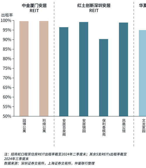 自上市以來,保障性租賃住房公募REITs因其底層項目較強的抗經(jīng)濟周期屬性及穩(wěn)健的收益表現(xiàn)而備受投資者的追捧。根據(jù)目前已披露的最新保租房REITs財報顯示,已上市的6支租賃住房公募REITs的底層項目經(jīng)營表現(xiàn)穩(wěn)健,出租率均維持在90%以上的水平, 資產(chǎn)強抗周期性的特征明顯。