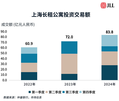 以上海為例,作為長租公寓投資最活躍的城市之一,近年來上海的長租公寓市場呈現(xiàn)出蓬勃的發(fā)展態(tài)勢。從2022年至2024年,上海連續(xù)三年創(chuàng)造交易活躍度新高,共計成交了46單長租公寓項目,投資交易額累計近220億元人民幣,實現(xiàn)了17.3%的復(fù)合增長率。這一數(shù)據(jù)充分說明了上海長租公寓市場的活力和潛力。