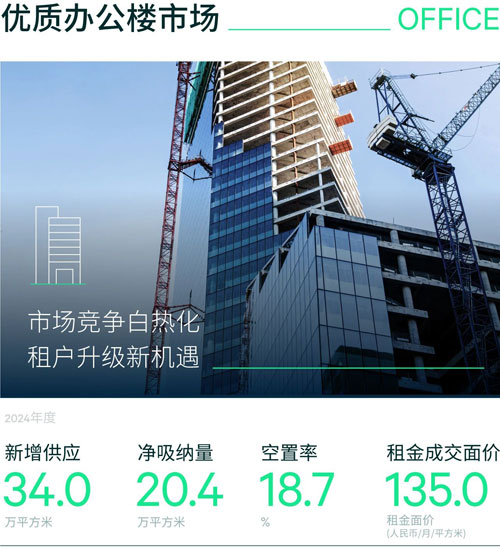 去化方面,全年凈吸納量同比回落,共錄得20.4萬平方米的去化。其中第四季度貢獻(xiàn)約6.6萬平方米。另外區(qū)域表現(xiàn)分化,琶洲和金融城成為辦公樓空置去化主力,分別在2024年錄得13.1萬平方米和11.3萬平方米的凈吸納量。而珠江新城年內(nèi)則租賃承壓,第四季度錄得負(fù)吸納,全年區(qū)域空置率同比上升2.1個(gè)百分點(diǎn)至年末的13.3%。