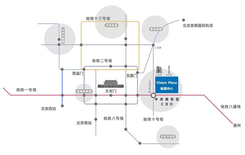 地處CBD核心區(qū)腹地,維晟中心自帶一種“絕版”的稀缺——國貿(mào)橋“金十字” 樞紐,與國貿(mào)建筑群、中央電視臺總部大樓等地標(biāo)并肩,南臨長安街,西望東三環(huán),東瞰 CBD中央公園,坐擁180度無遮擋首排觀景,下樓即可步入公園。未來項目B1層可直通地鐵1號線與10號線國貿(mào)站。