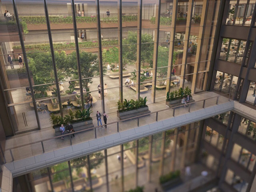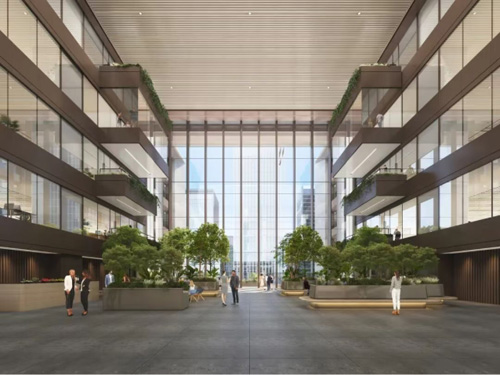 與一般寫字樓僅有1-2個中庭不同,維晟中心的共享中庭多達(dá)6個,每3至5層即嵌入一座約20米的 “垂直綠洲”,成為CBD區(qū)域內(nèi)共享中庭數(shù)量最多的樓宇。