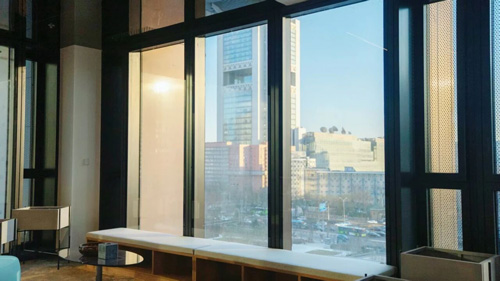 自然通風(fēng)是這套系統(tǒng)的亮點。在辦公區(qū),幕墻每12米設(shè)有一組與立面高度整合的豎向開啟扇,向外推開即實現(xiàn)高效自然通風(fēng),且完全不影響室內(nèi)使用空間。