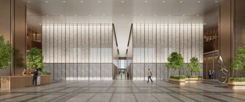 在CBD一眾超高層寫字樓中,維晟中心的外觀顯得獨特而考究,它摒棄了傳統(tǒng)寫字樓純玻璃幕墻的立面風(fēng)格,以 “石材+金屬+玻璃幕墻”的三重奏構(gòu)建了精致的建筑語言。