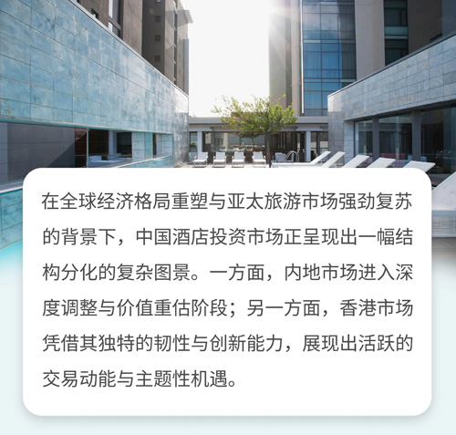 基于對(duì)當(dāng)前基本面的研判,仲量聯(lián)行預(yù)測(cè),2025年中國(guó)內(nèi)地酒店投資交易總額約為16億美元,2026年有望小幅提升至17億美元。復(fù)蘇將是漸進(jìn)且結(jié)構(gòu)性的,一線城市及核心地段的優(yōu)質(zhì)資產(chǎn)將率先回暖。