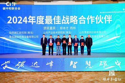 碳中和聯(lián)合會與會員企業(yè)成果發(fā)布由孟凡偉秘書長、迂婕院長為山東零度供應(yīng)鏈公司頒發(fā)碳減排證書。