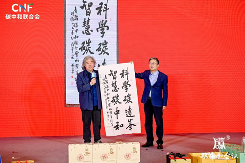 青島市文藝評論家協(xié)會副主席、民建中央畫院藝委會主任、一級美術(shù)師宋文京為聯(lián)合會贈送"科學(xué)碳達(dá)峰 智慧碳中和"書法作品。