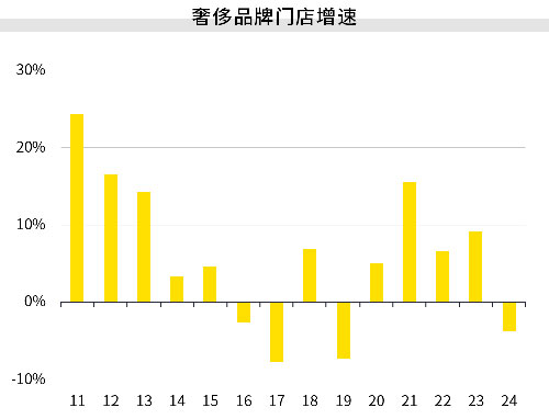 數(shù)據(jù)來(lái)源:品牌官網(wǎng)、第一太平戴維斯市場(chǎng)研究部基于12個(gè)奢侈品牌在20座主要城市門店數(shù)量