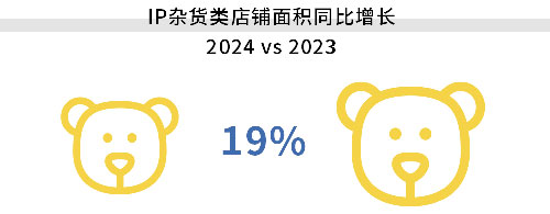 由Kid和Adult組成的Kidult文化正成為備受矚目的商業(yè)現(xiàn)象,消費(fèi)者沉浸于童趣中找尋輕松與快樂(lè)。從迪士尼、樂(lè)高到泡泡瑪特等潮玩品牌,正圍繞滿足成年人于童趣、懷舊等個(gè)性需求,吸引消費(fèi)。2024年,IP型雜貨類店鋪面積在上海樣本商場(chǎng)中的面積同比增長(zhǎng)19%,持續(xù)的高增長(zhǎng)勢(shì)頭使其為眾多商場(chǎng)青睞。
