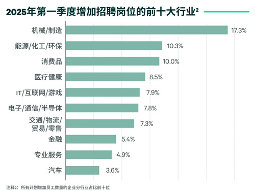獵聘數(shù)據(jù)顯示,2025年第一季度計劃增加員工數(shù)的企業(yè)占比環(huán)比提升5.2個百分點至25.6%,而計劃減少的比例環(huán)比下降12個百分點至19.1%。在增加招聘崗位的前十大行業(yè)中,70%與新質(zhì)生產(chǎn)力和消費高度相關(guān)。行業(yè)龍頭企業(yè)的動向同樣反映這一趨勢,近期騰訊和阿里巴巴均表示將加大人員招募力度。
