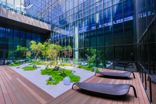 同時為了滿足企業(yè)日益旺盛的生態(tài)健康辦公需求,其首層戶型配置有專屬庭院及7.7米層高地下空間,二、三層戶型配置有空中露臺,營造無界空間體驗。搭配園區(qū)內(nèi)打造的萬平內(nèi)湖、龍形水系、櫻花園等園林景觀,以及一墻之隔的三廟一塔景區(qū),茹古涵今的生態(tài)人文景觀,不僅能夠滿足企業(yè)商務(wù)辦公需求,同時也可承載商務(wù)接待、品牌展示等多重功能,可謂是獨具匠心的創(chuàng)新商務(wù)之地。