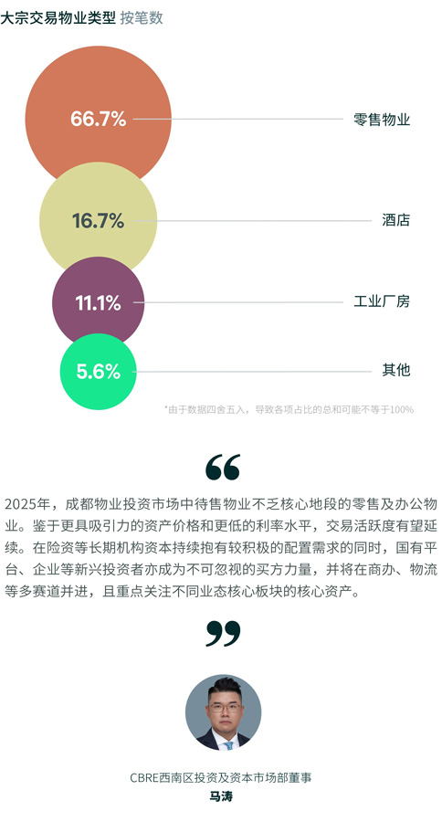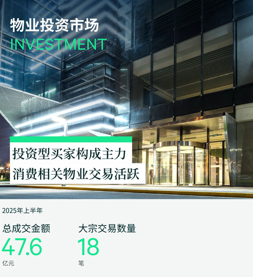 2025年上半年,成都物業(yè)投資市場交易筆數(shù)和金額實現(xiàn)雙增長,錄得18筆成交合計約47.6億元,半年環(huán)比分別提升260%、64.1%。投資型買家為主力,占比70.6%,包括國有平臺、地產(chǎn)基金及中資企業(yè)等。
